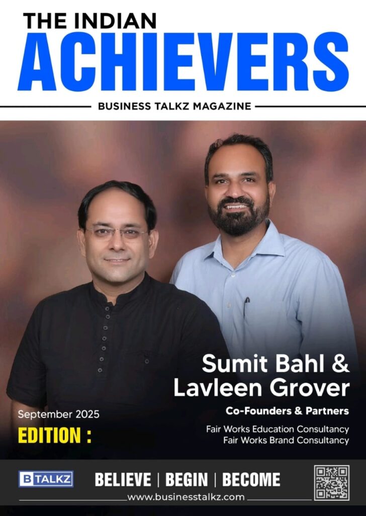 Sumit Bahl & Lavleen Grover, Founders of Fair Works Education Consultancy & Brand Consultancy get featured in Emerging Entrepreneurs of 2023 from India by Business Talkz Magazine 8th Edition